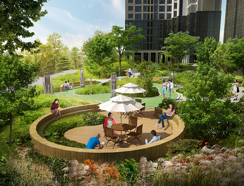놀이, 운동, 휴식, 산책의 기능이 결합되어 단지의 삶을 더욱 풍성하게 만들어줄 정원공간