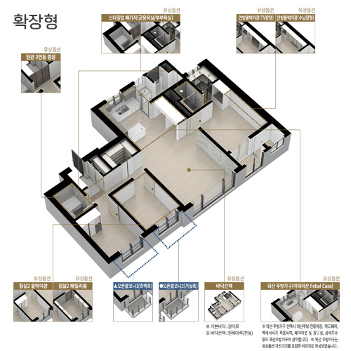 ※ 선택 사항은 발코니 확장 시 선택할 수 있습니다. ※ 상기 평면도는 소비자의 개략적인 이해를 돕기 위한 것으로 평면, 면적, 마감재는 실제 공사 시 다소 변경될 수 있습니다.