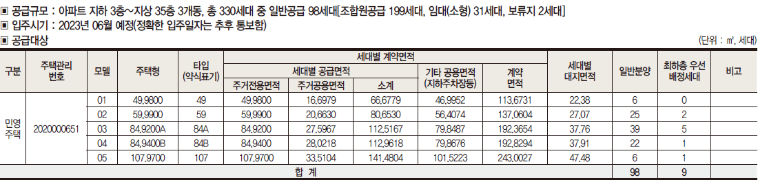 HOME 분양안내 공급내역