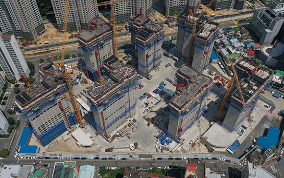 당 현장은 2021년 8월 착공하여 현재 골조공사 및 세대내부 습식공사를 진행하고 있습니다.