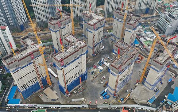당 현장은 2021년 08월 착공하여 현재 골조공사 完(부대시설 골조 中) 및 세대 내·외부 마감공사를 진행하고 있습니다.