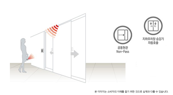 공동현관을 NONE-PASS로 통행할 수 있습니다. 인증을 위해 주머니나 가방 속의 KEY를 찾을 필요 없이 자유로운 보행으로 공동현관을 들어 갈 수 있습니다.
