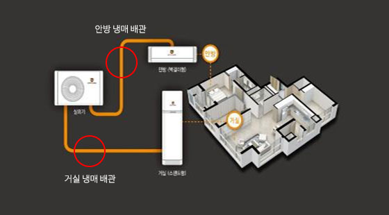 ▷ 입주 후 거질과 안방에 에어컨을 설치할 때 실외기실까지 배관이 매립되어 있어 외관이 깔끔하고 설치비용을 절약할 수 있음.