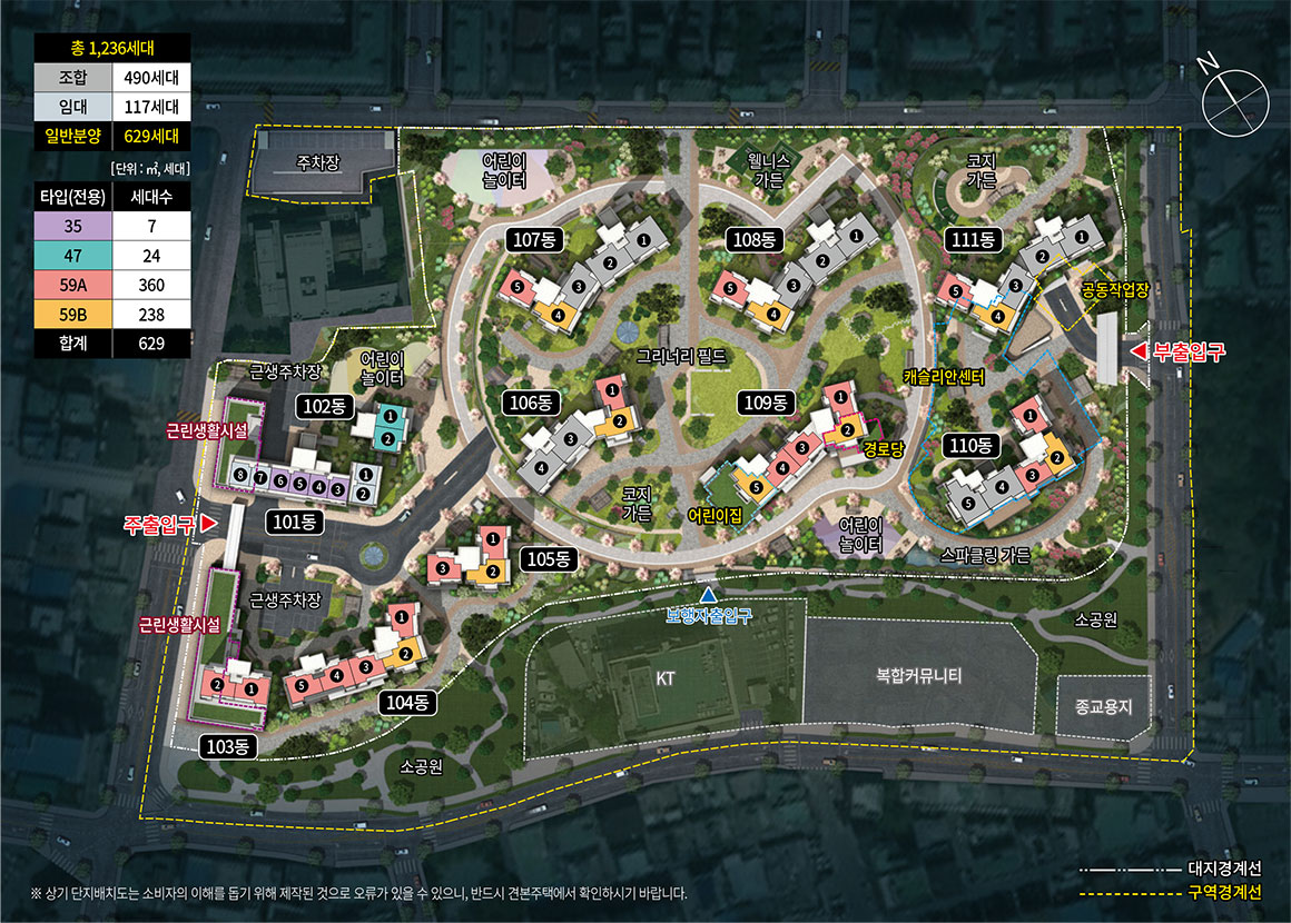 ※ 호수별 조망과 일조 차이가 상이하오니 계약시 호수를 필히 확인하시기 바랍니다.