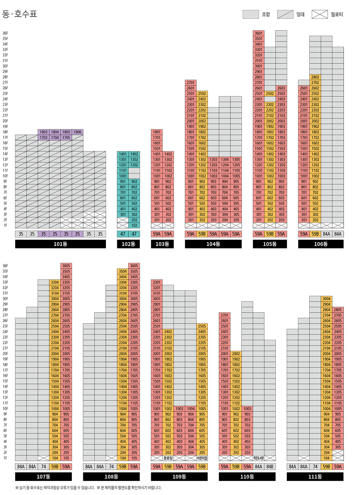 ※ 상기 동·호수 및 가격표는 제작과정상 오류가 있을 수 있으니, 반드시 견본주택에서 확인하시기 바랍니다.