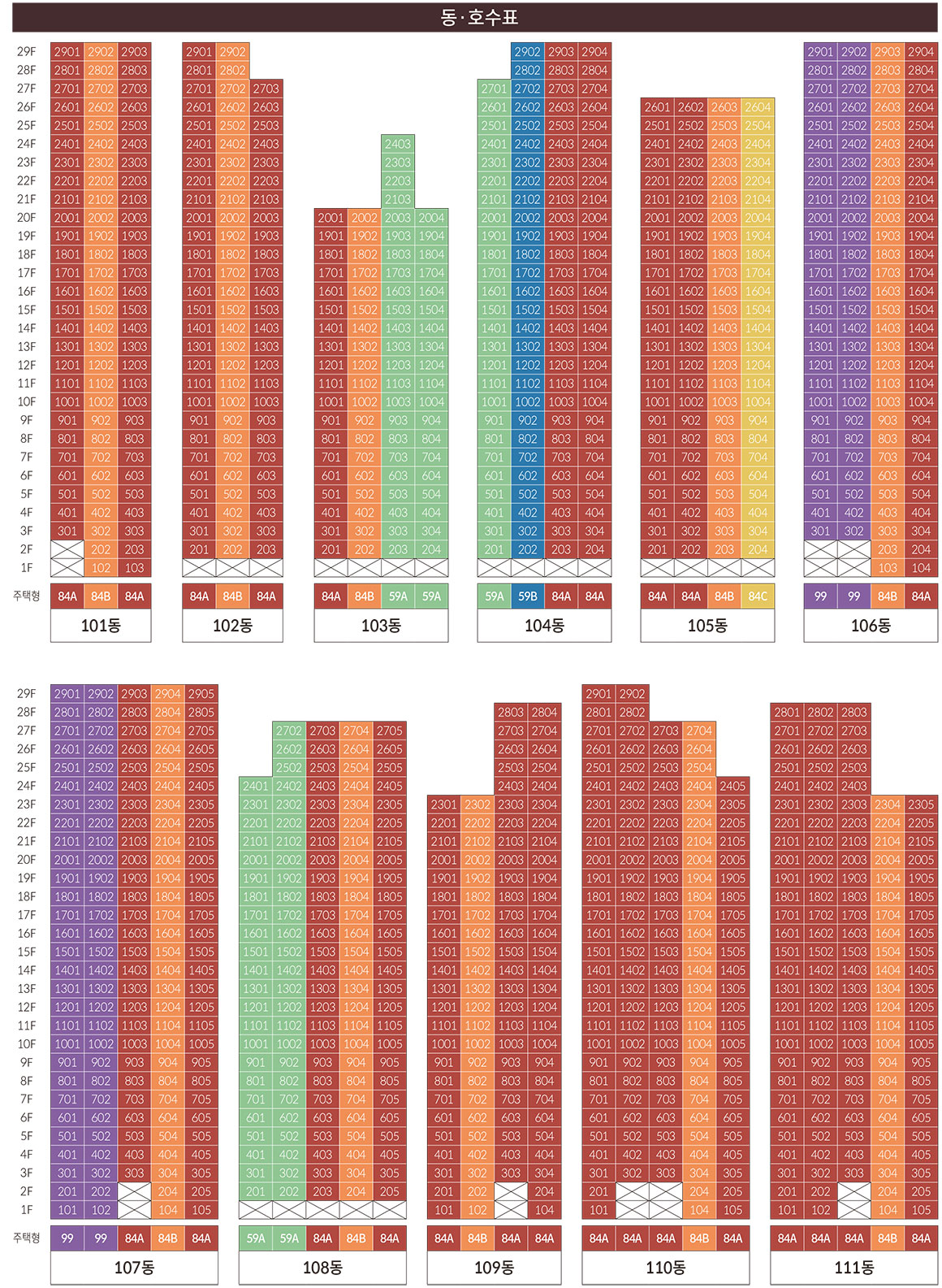 ※ 상기 동·호수 표는 제작 과정 상 오류가 있을 수 있으니, 반드시 견본 주택에서 확인하시기 바랍니다.