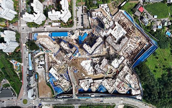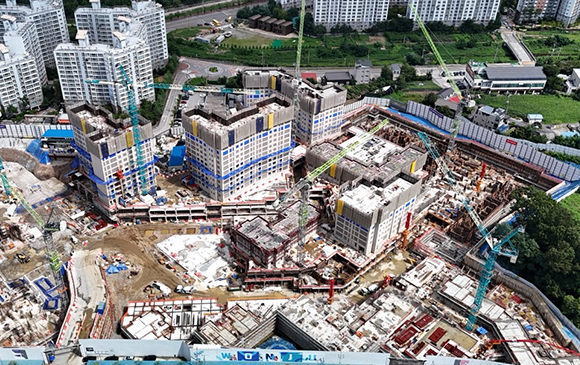현재 토공사 및 흙막이 공사 및 타워크레인 설치 및 철근콘크리트 공사중에 있습니다.