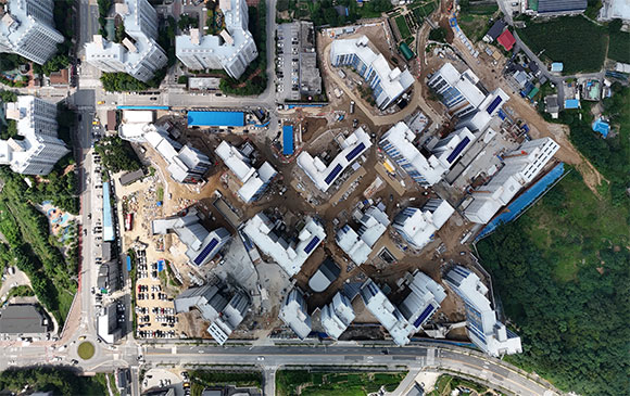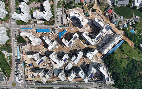 현재 도배 및 마루공사, 타일 공사, 지하 및 실내 도장공사, 부대토목 공사, 조경공사 및 놀이시설물 설치 공사,가구 설치 공사 중에 있습니다.