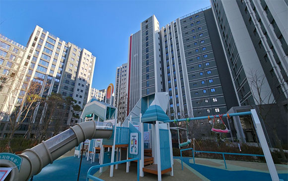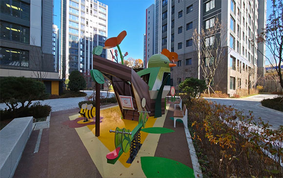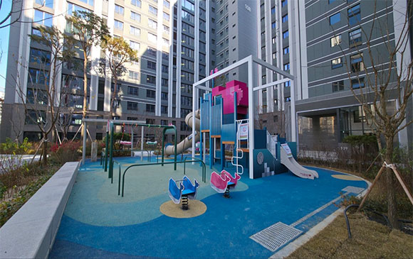 외부 도장공사, 부대토목 공사, 조경공사 및 놀이시설물 설치 공사 중에 있습니다.