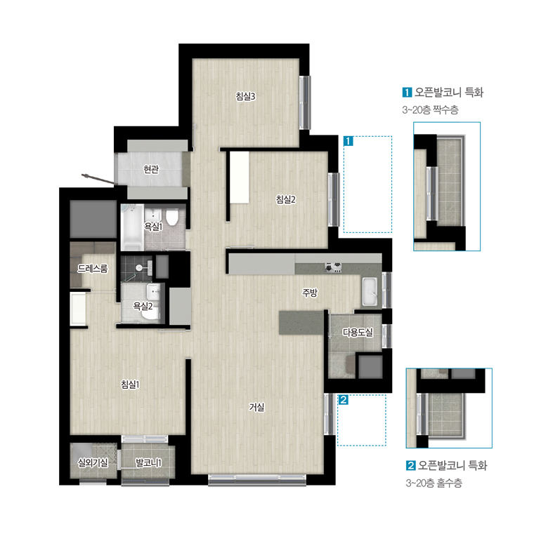 ※ 주동의 위치 및 형태에 따라 코아 부분은 동일형에서도 서로 상이할 수 있습니다.