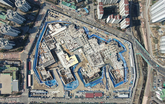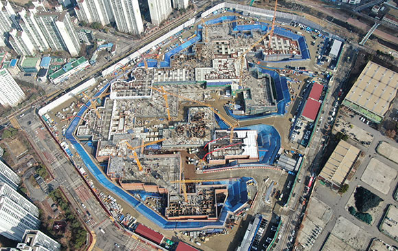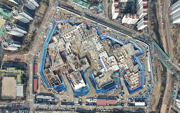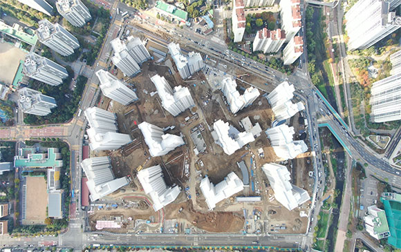 -. 철근콘크리트공사 : APT 및 주변 지하주차장 지붕층 ~ 3F 바닥 콘크리트 타설,