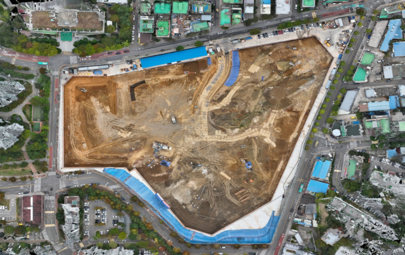 현재 토사굴착 및 반출작업을 진행하고 있으며, 여름 집중호우에 대비한 안전대책을 완비한 가운데 안전하게 공사 진행하고 있습니다.