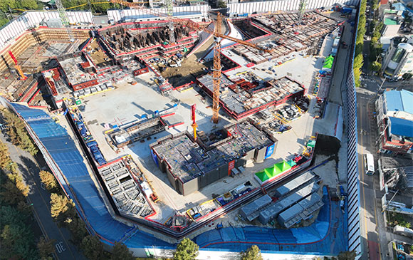 현재 기초타설 및 지하주차장 골조공사가 진행중입니다.