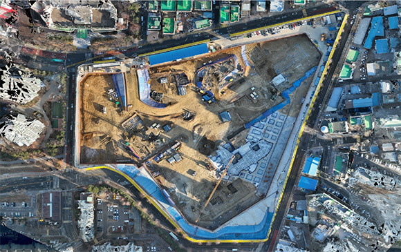굴착이 완료된 구역부터 동 기초파일 시공을 준비하고 있습니다.