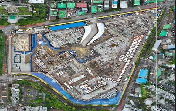 굴착 벽면 안정성 확보를 위한 흙막이 공사와 차수공사를 진행중에 있습니다.