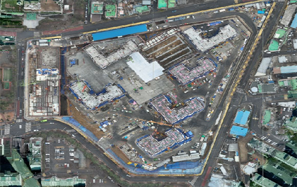 현재 지하 주차장 구체 형성을 위한 토사굴착 후 반출중입니다.