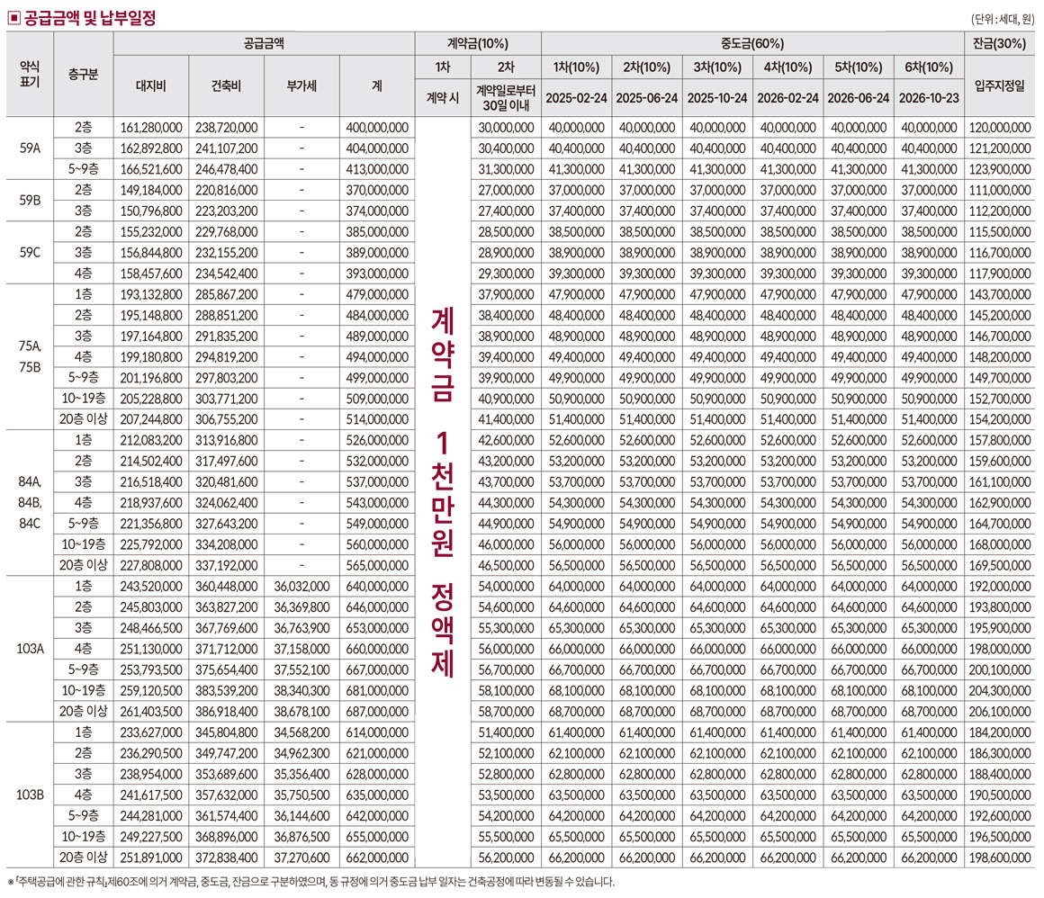 공급금액 및 납부일정