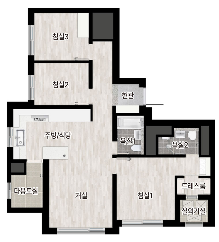 ※ 일부세대는 대칭형으로도 시공되어 일부 거실, 안방, 침실, 주방의 향이 달라질 수 있으니 필히 확인하시기 바랍니다.