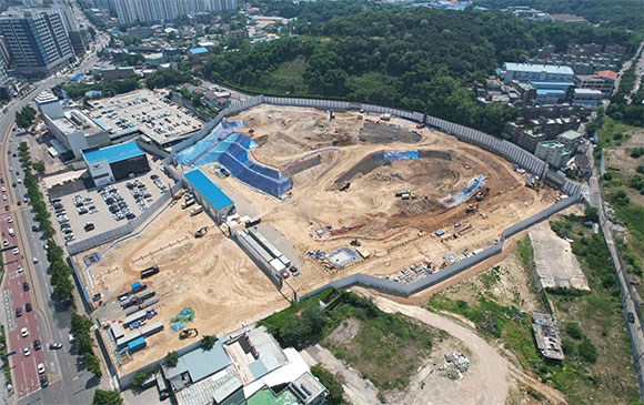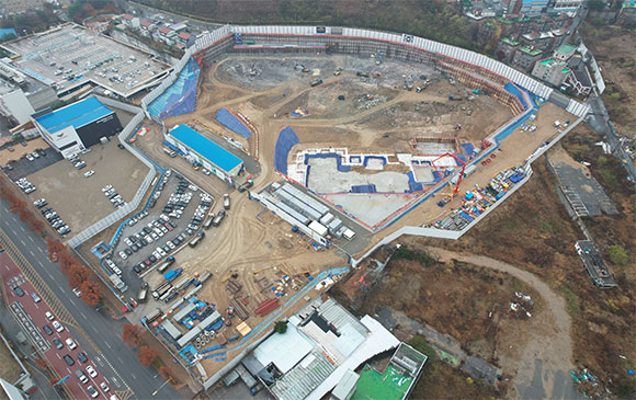 ▶ 터파기 및 토사, 암 반출 진행 중
