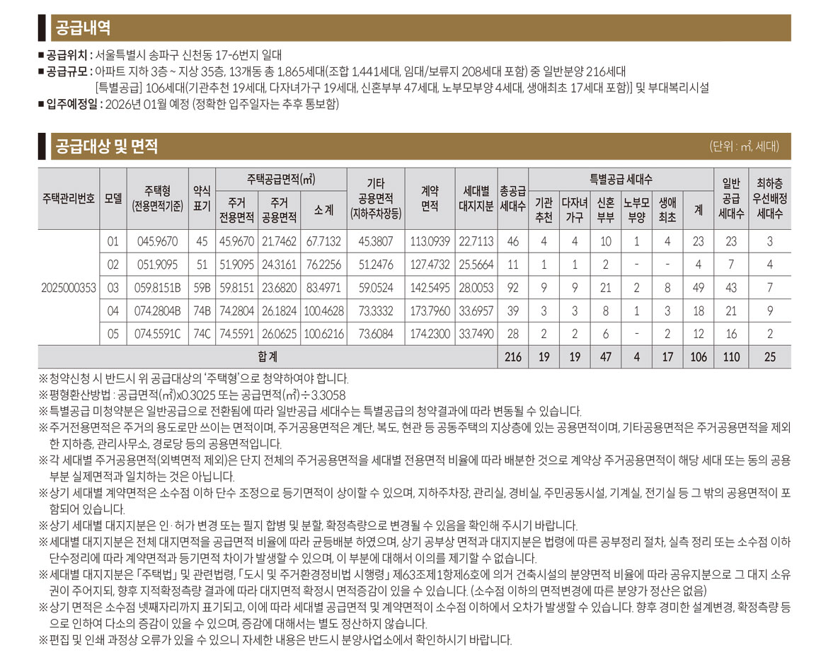 입주자모집공고_잠실 르엘 (정정 공고).pdf공급내역