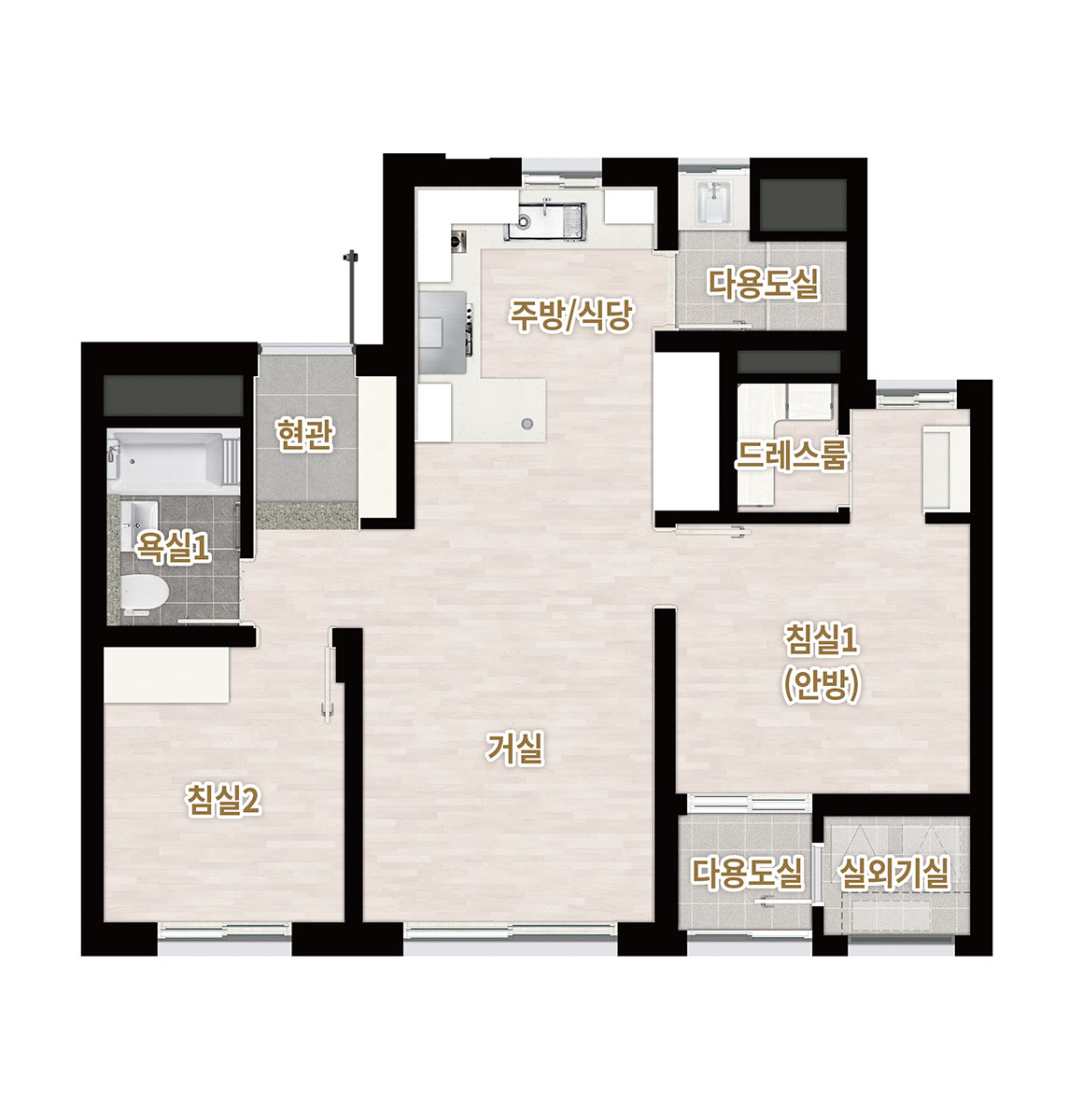 ※ 일부세대는 대칭형으로도 시공되어 일부 거실, 안방, 침실, 주방의 향이 달라질 수 있으니 필히 확인하시기 바랍니다.